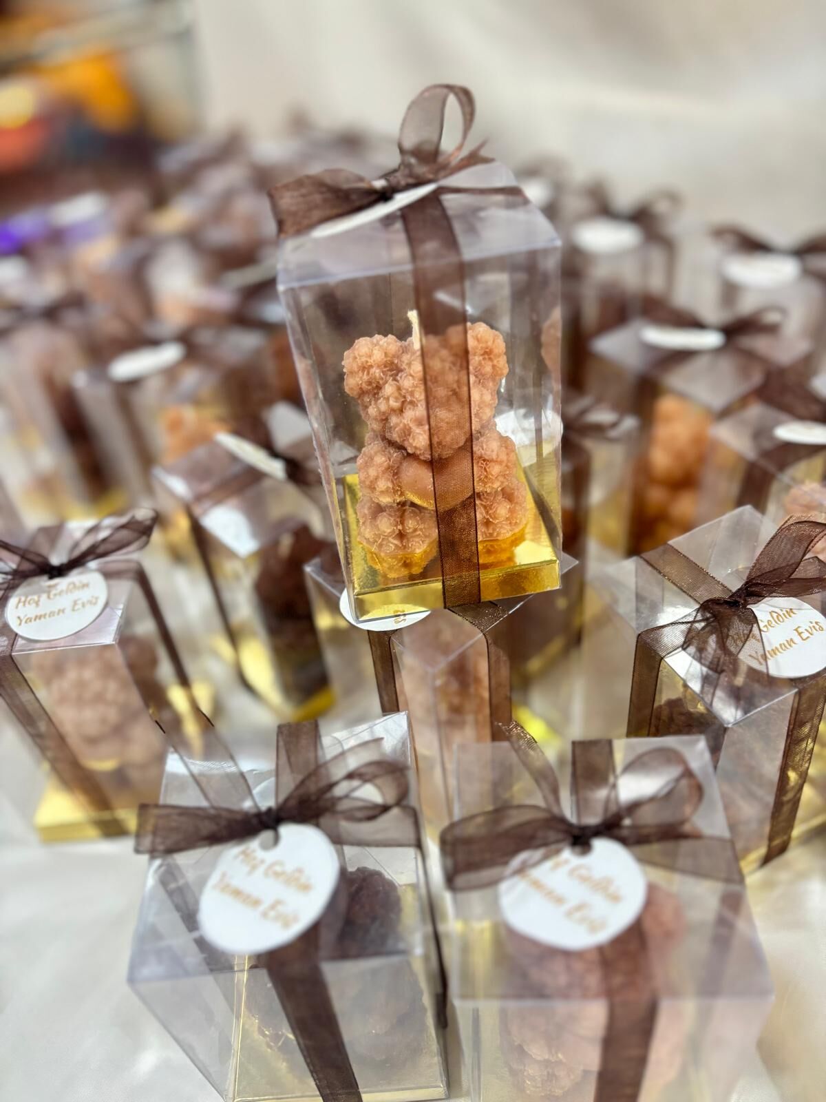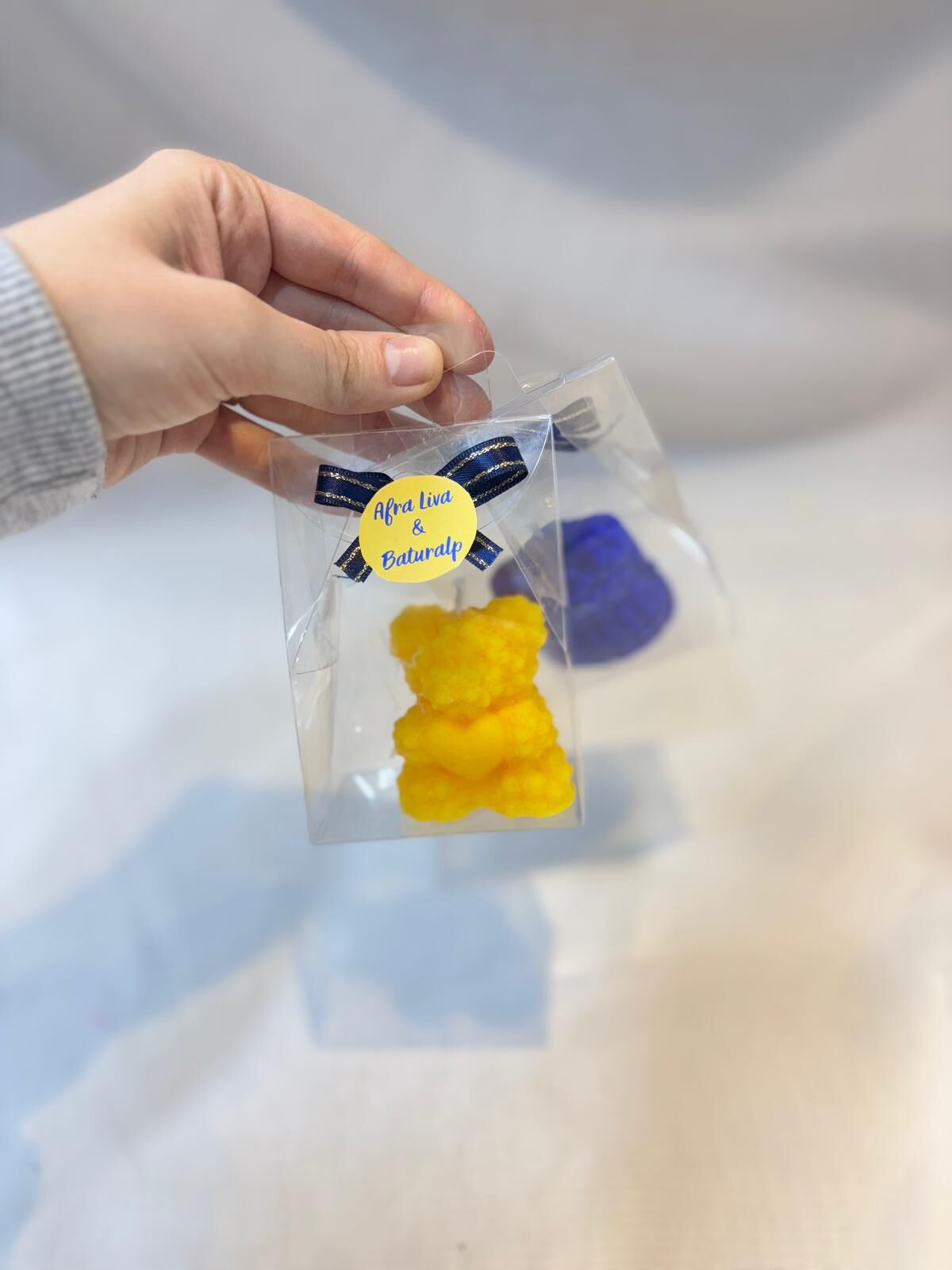 Ürünler asetat kutuda, ürün rengiyle uyumlu kurdele bağlanmış şekilde gönderilir.