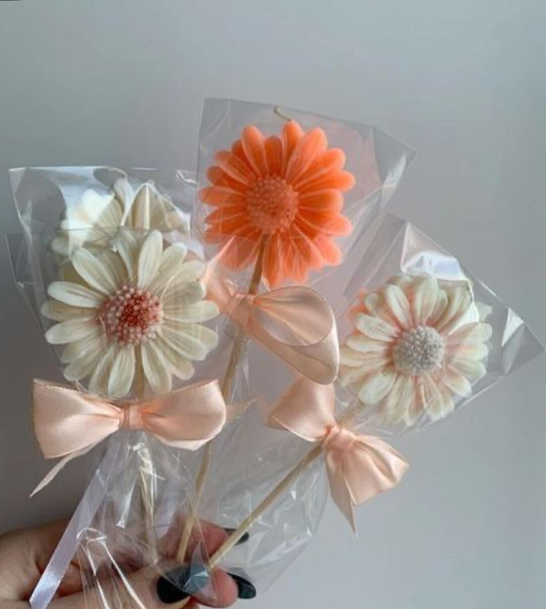 Ürünler şeffaf poşet içinde, ürün rengiyle uyumlu kurdele bağlanmış şekilde gönderilir.